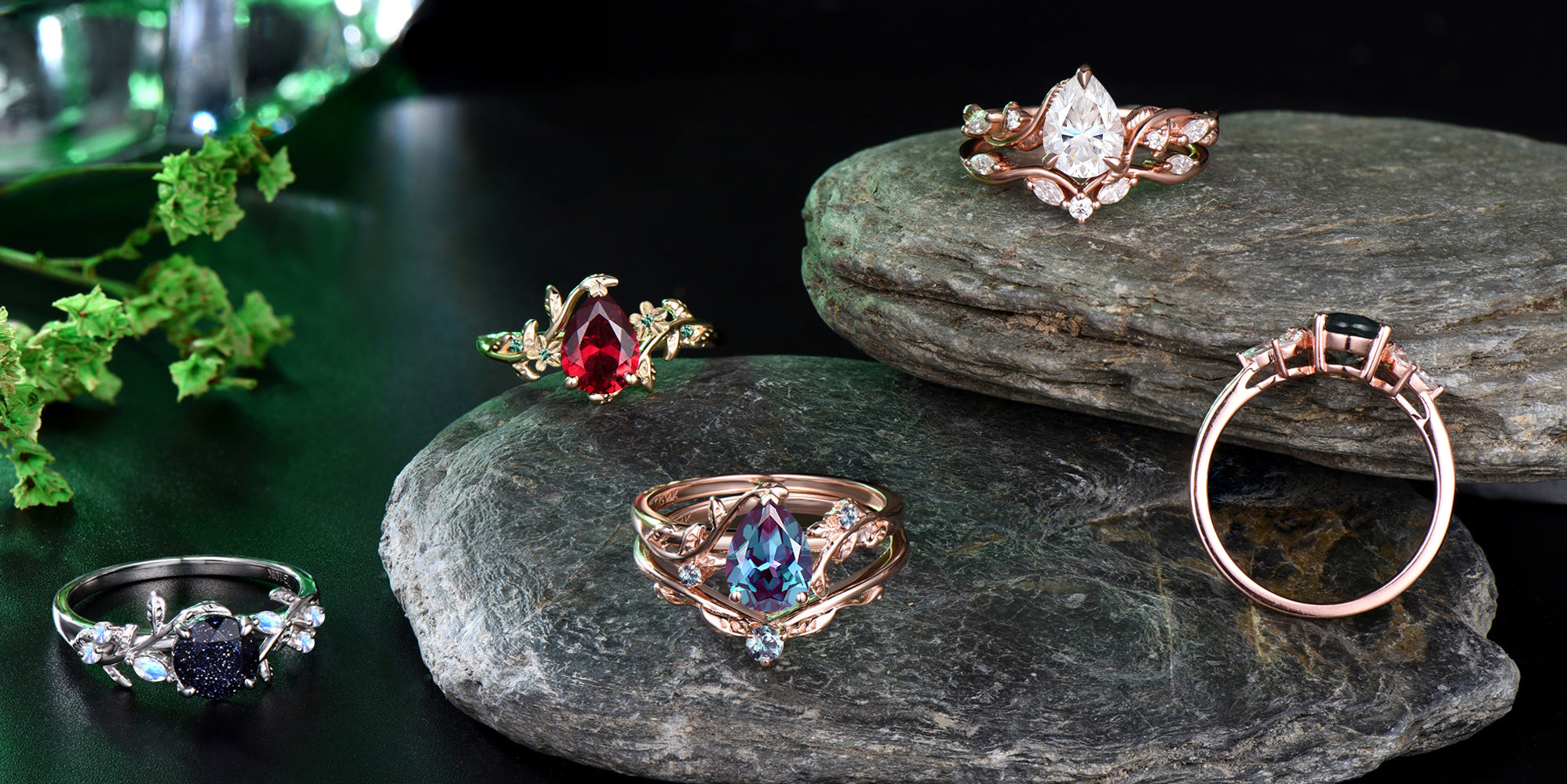 1.25ct Twig Vine Branch Nature Inspired Teardrop Alexandrite Engagement Ring Rose Flower Floral Amethyst Rings Unique June Birthstone Gifts