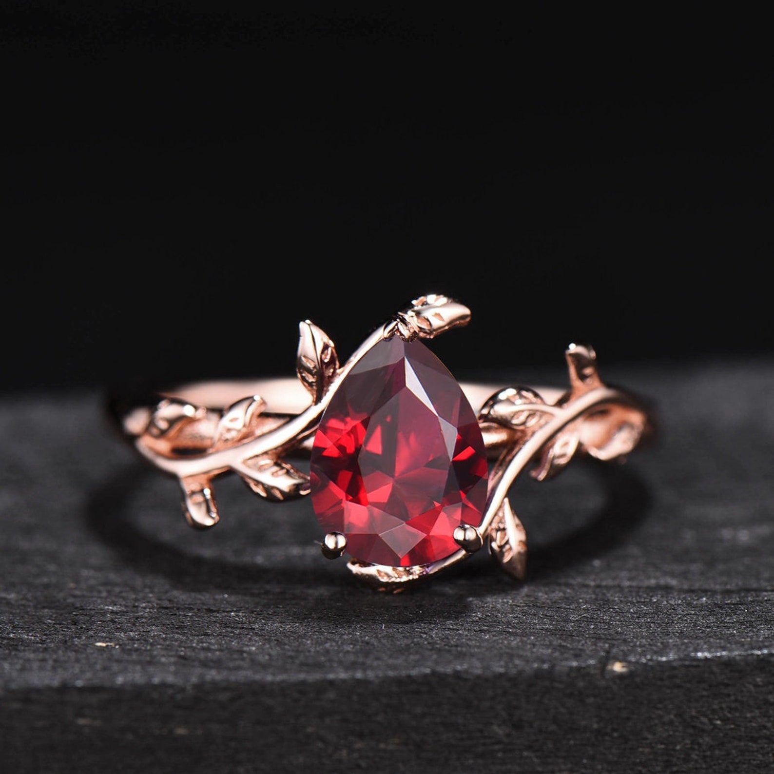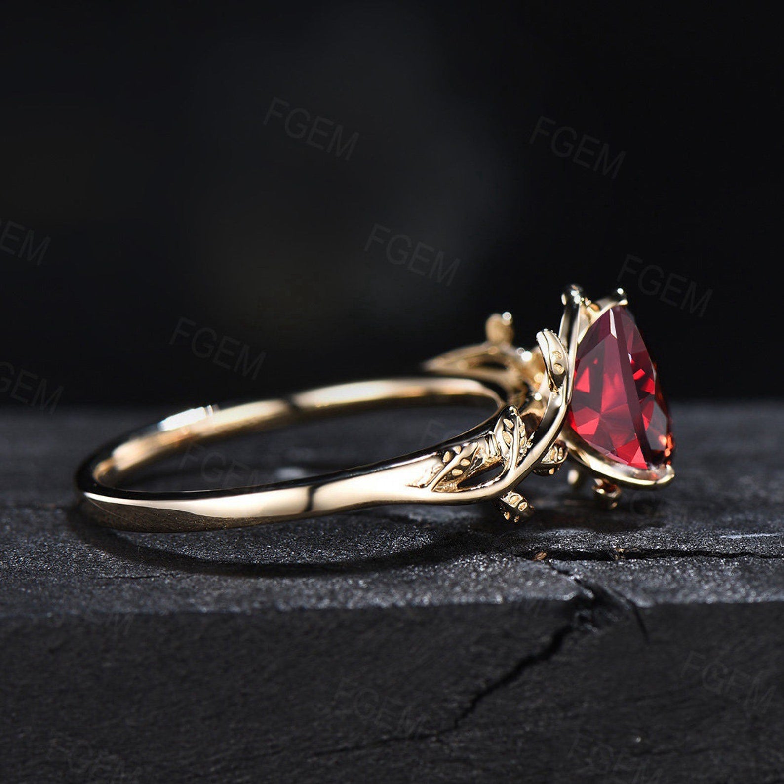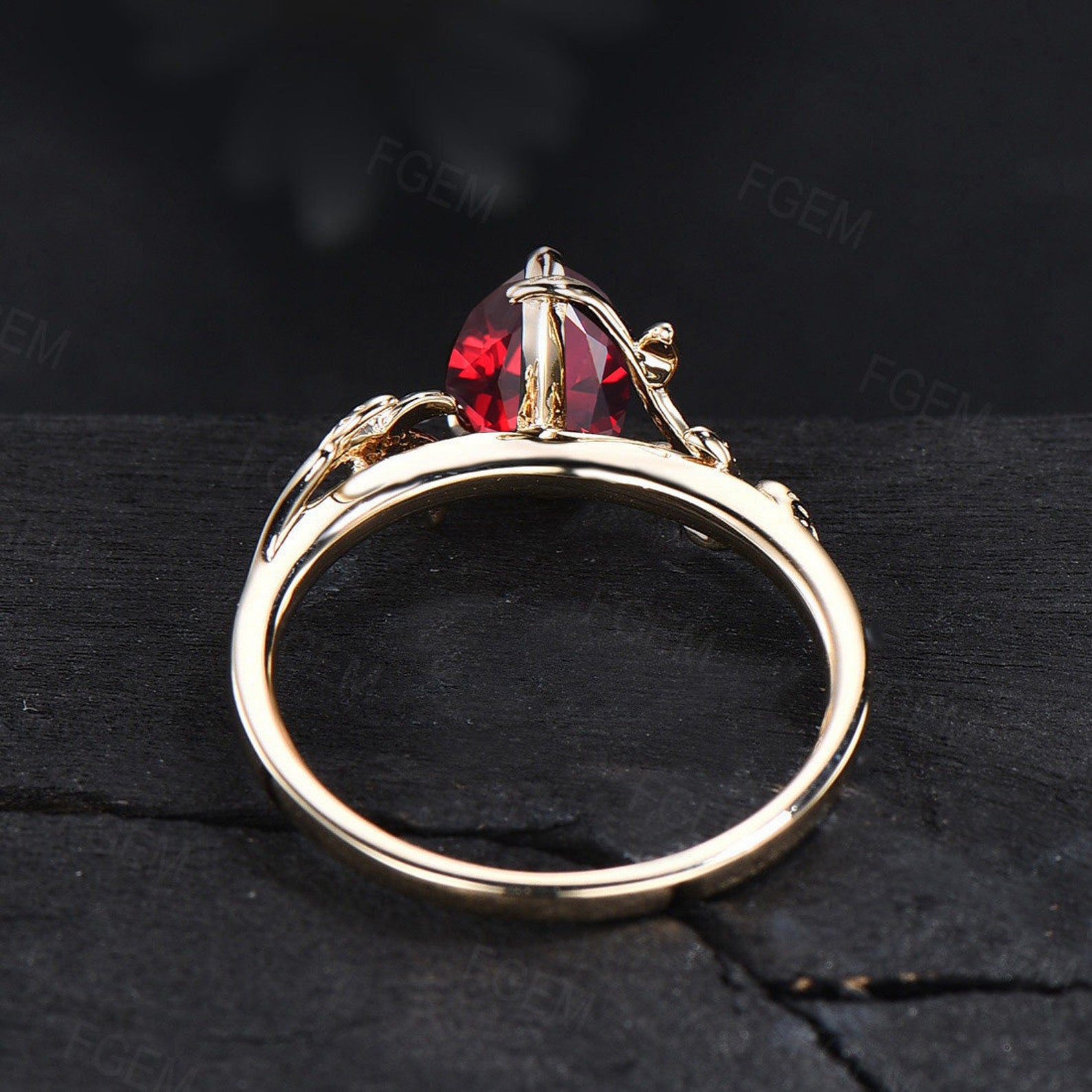 1.25ct Pear Shaped Ruby Gemstone Jewelry 14K Yellow Gold Twig Leaf Ruby Engagement Rings Anniversary Ring For Women July Birthstone Gift