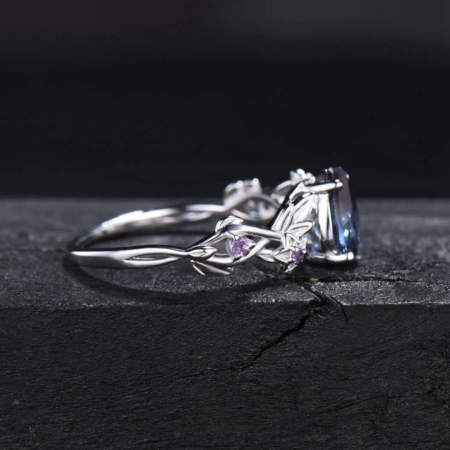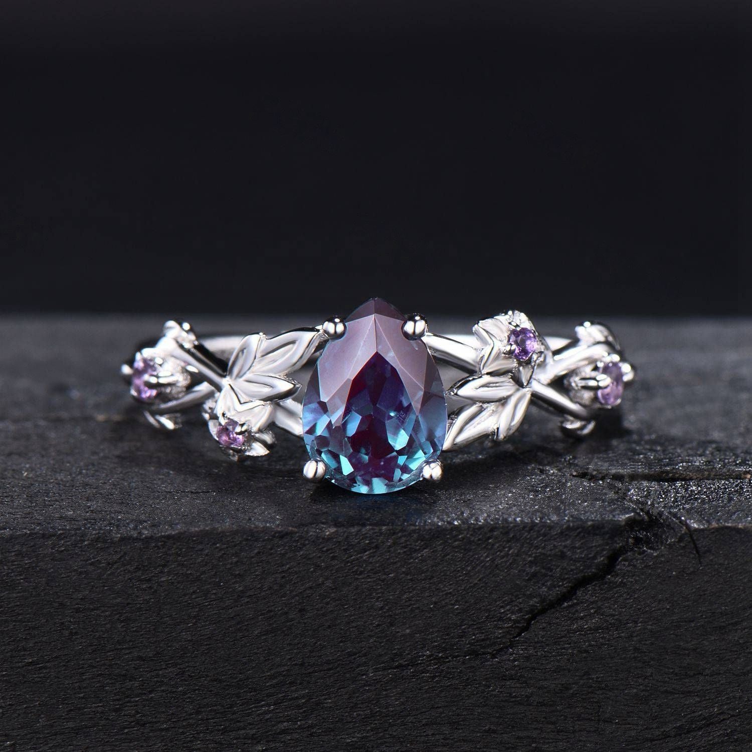 1.25ct Twig Vine Branch Nature Inspired Teardrop Alexandrite Engagement Ring Rose Flower Floral Amethyst Rings Unique June Birthstone Gifts
