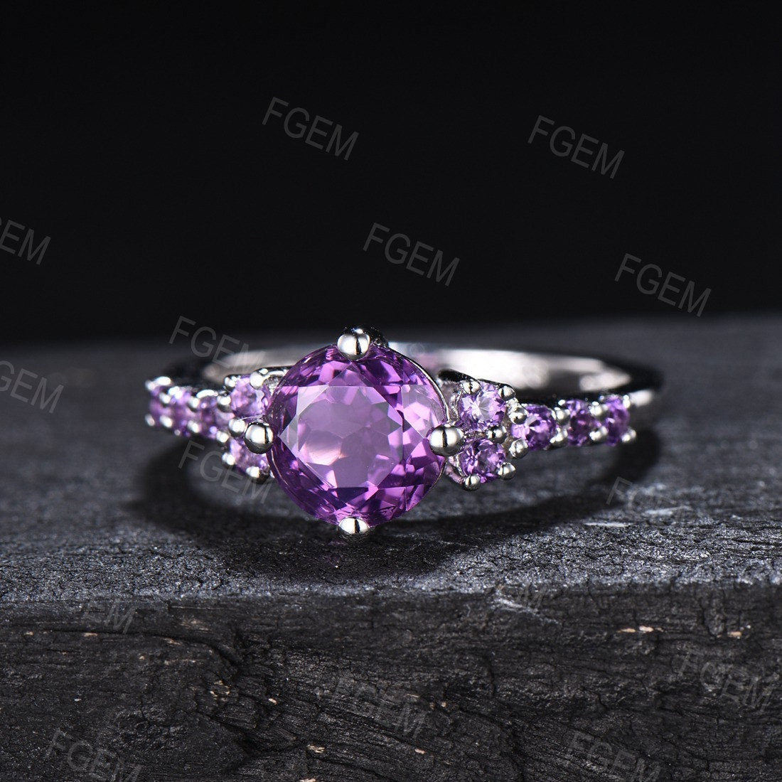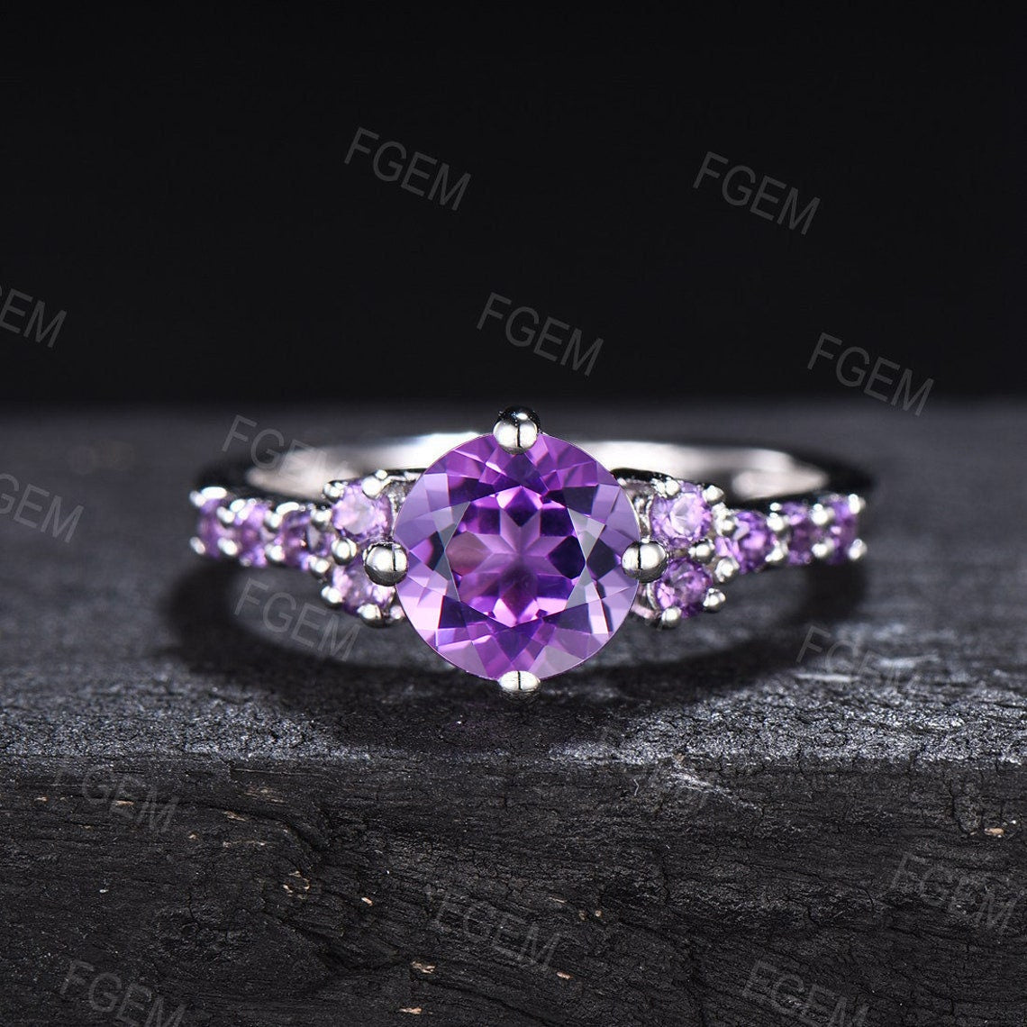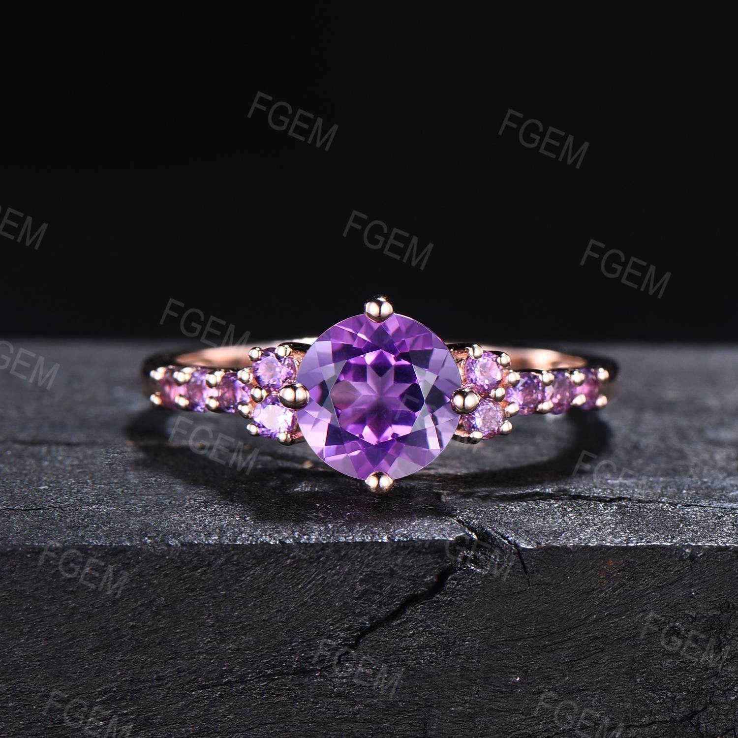 - Main stone : 7mm round Natural Amethyst