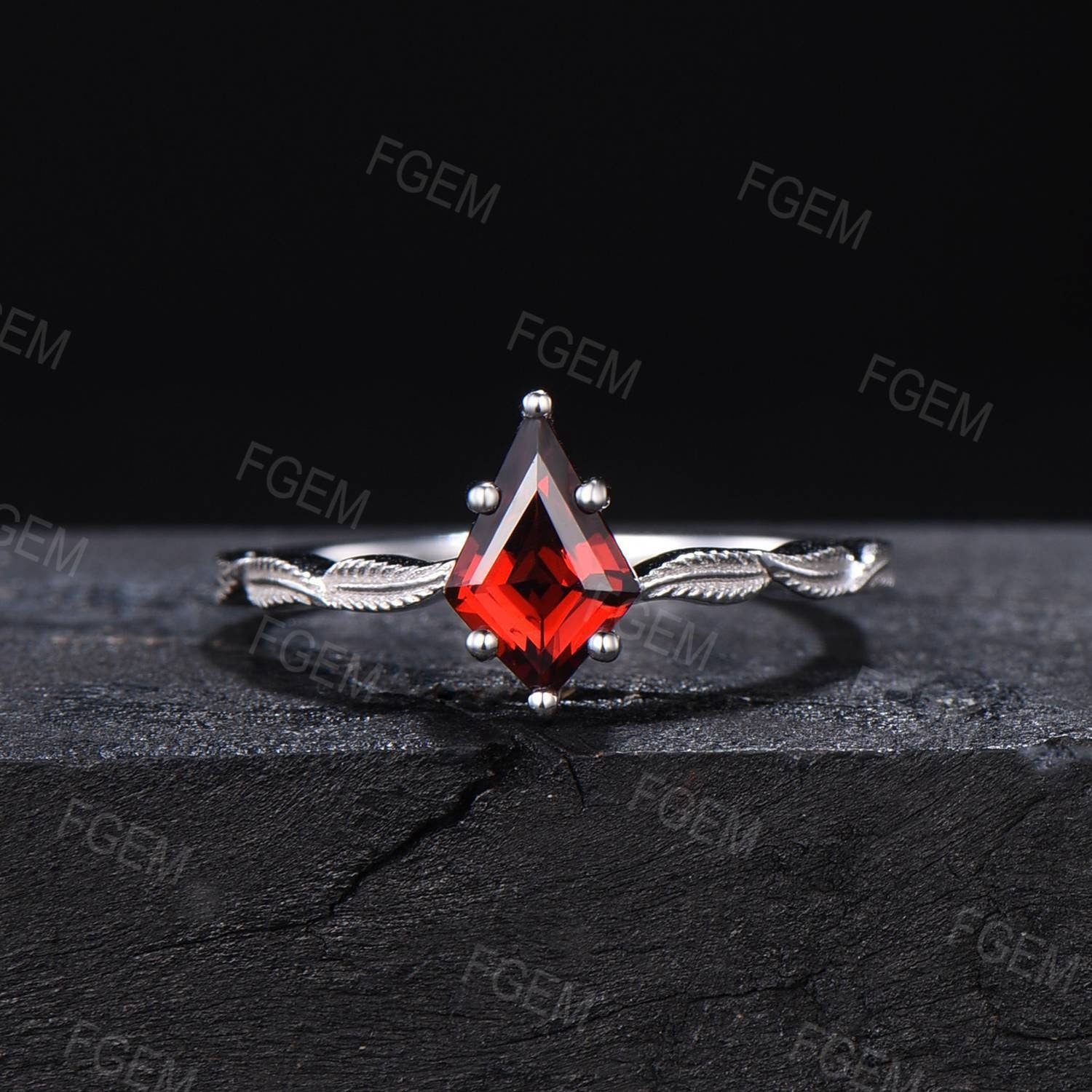 1ct Kite Cut Natural Garnet Ring Kite Shaped Nature Inspired Leaf Band Garnet Solitaire Ring 10K Rose Gold January Birthstone Promise Ring