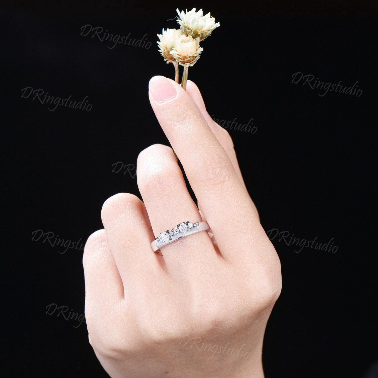 4mm 14k Solid White Gold Moissanite Matte Wedding Band Unique Cluster Diamond Brushed Band for Women Dainty Bold Chunky Band Promise Ring
