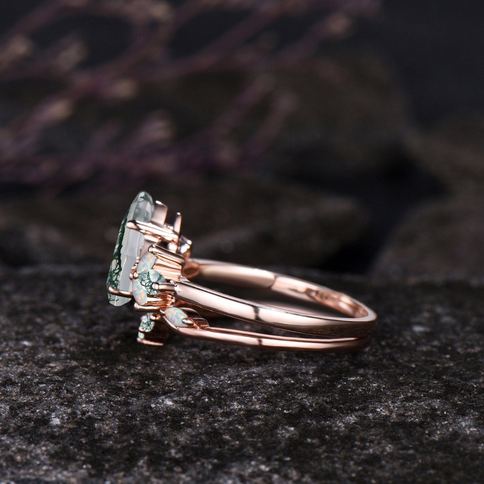 Every moss agate is natural, No two moss agate stones are the same, making each one unique. that is the uniquess of moss agate ,So kindly remind that It is normal that the finished ring won't be the same as our picture.