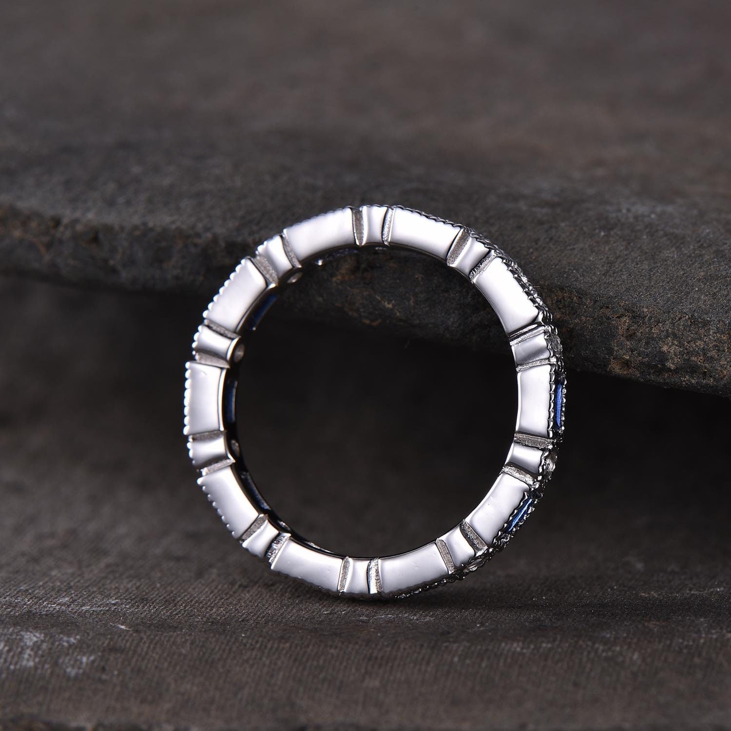 Blue Sapphire Wedding Band, Full Eternity Band, Silver Stacking Ring, High Quality Sapphire Ring, September Birthstone, Vintage Jewelry