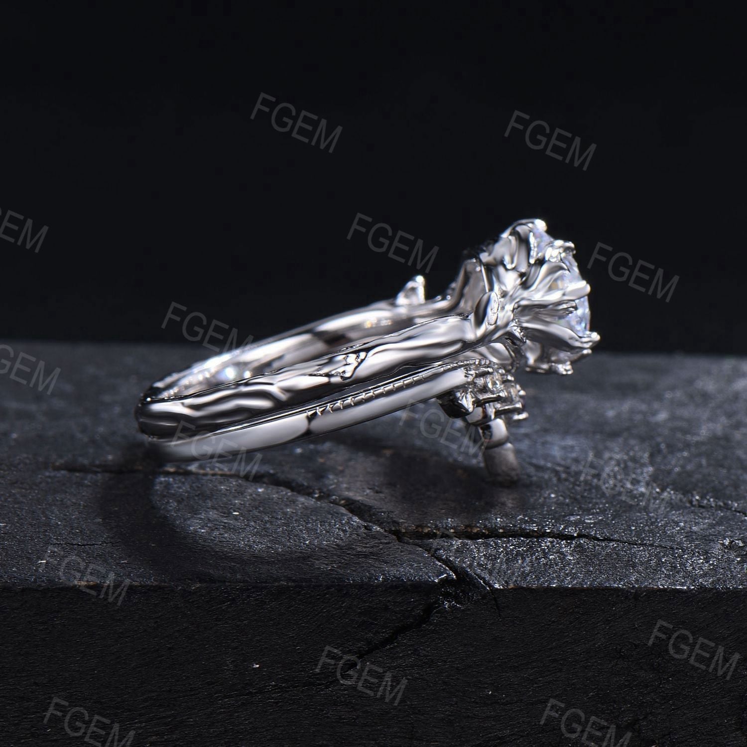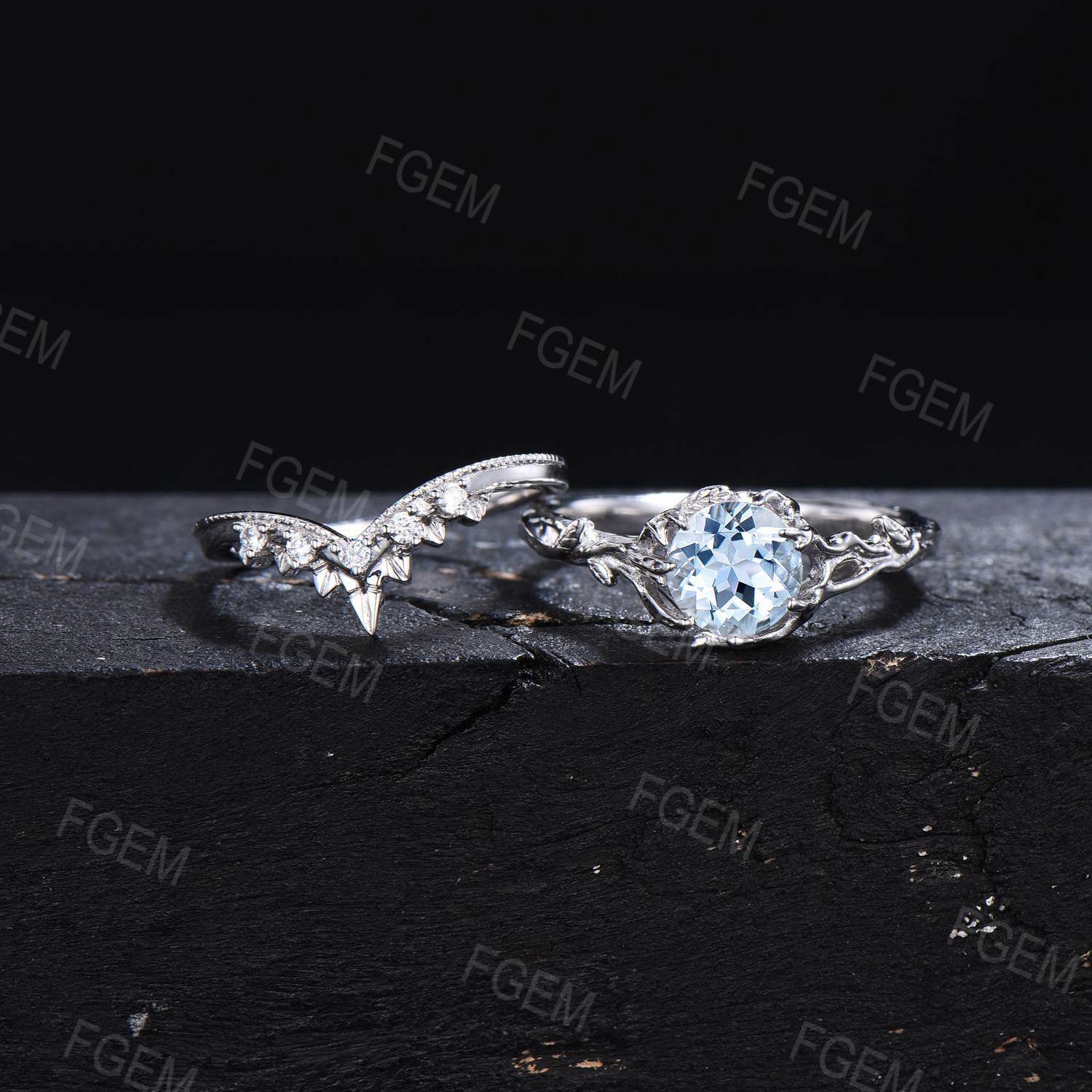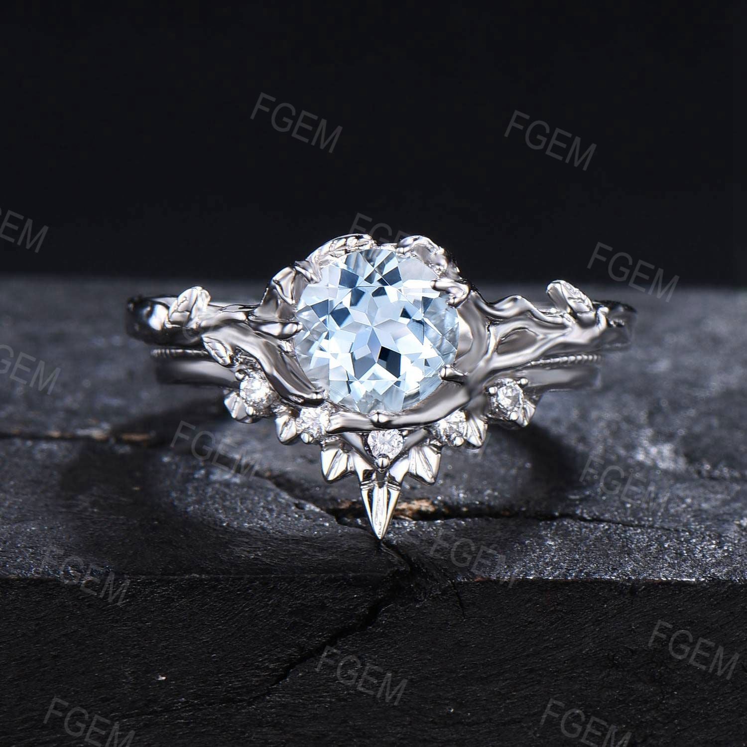 Branch Aquamarine Engagement Ring Nature Inspired Moissanite Wedding Ring Round Nature Aquamarine Solitaire Bridal Set March Birthstone Gift