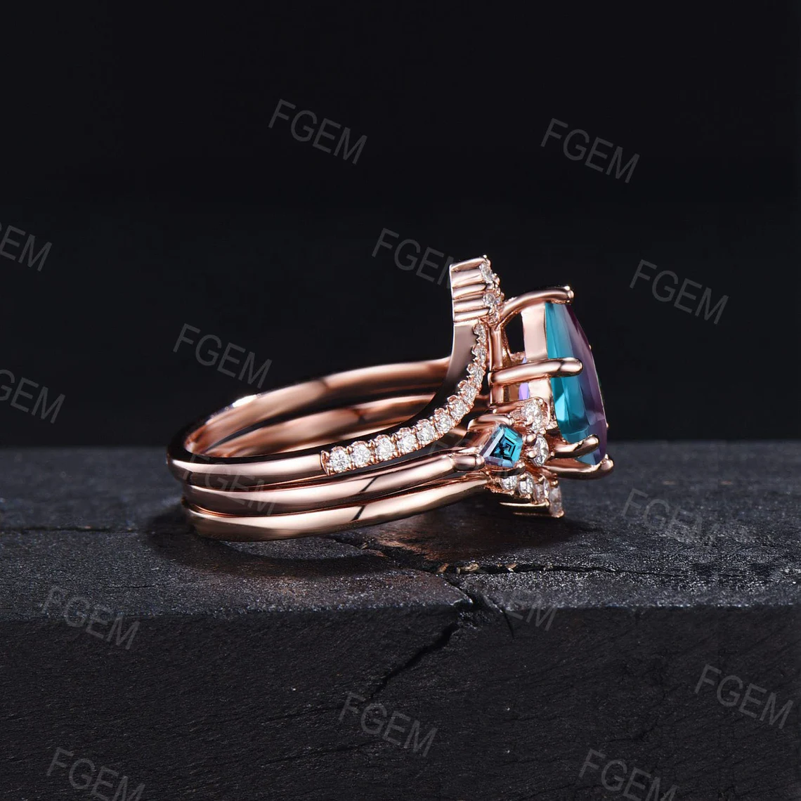 - Matching band : Moissanite and blue sapphire