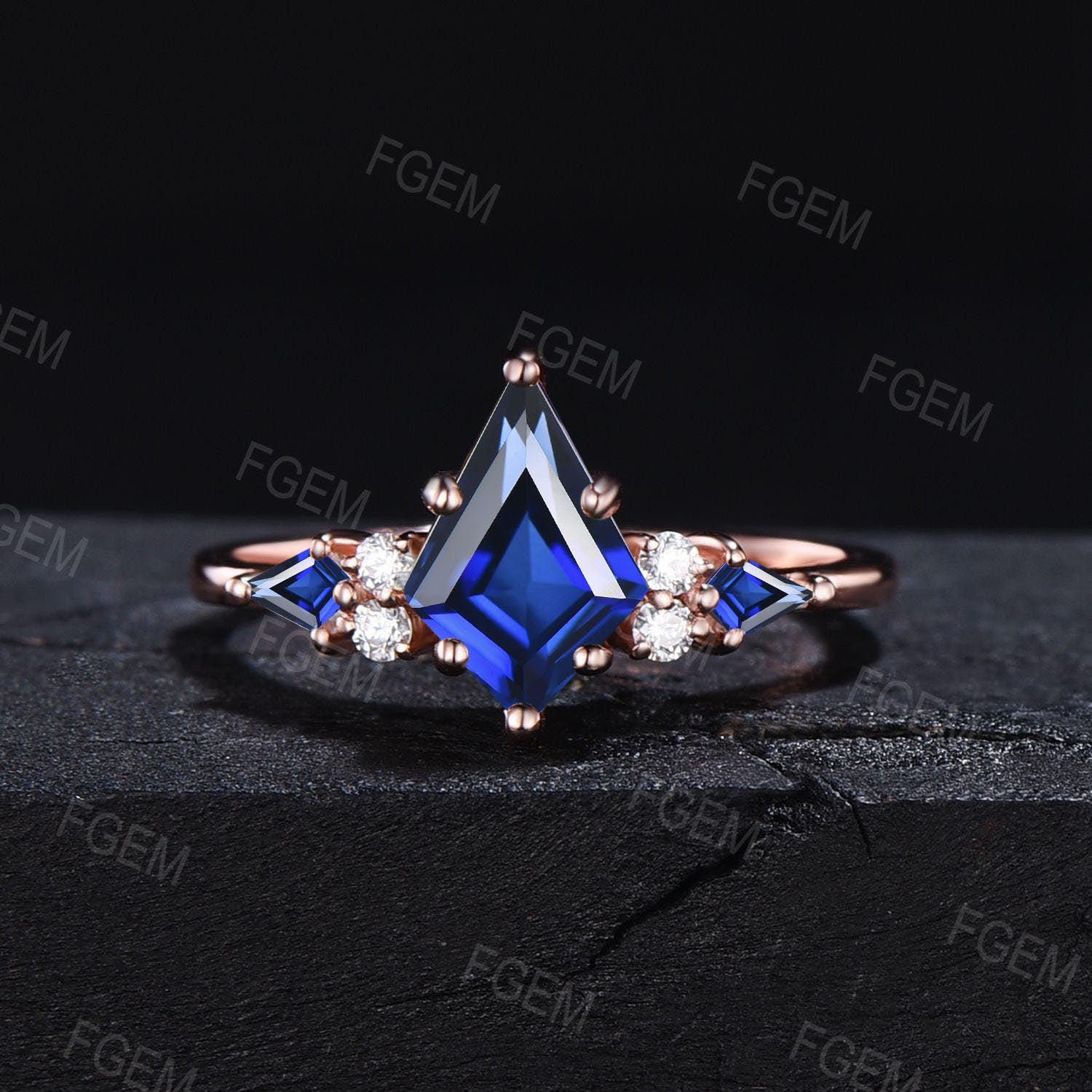 - Side stone :2.5*4mm kite blue sapphire and 1.8mm moissanite