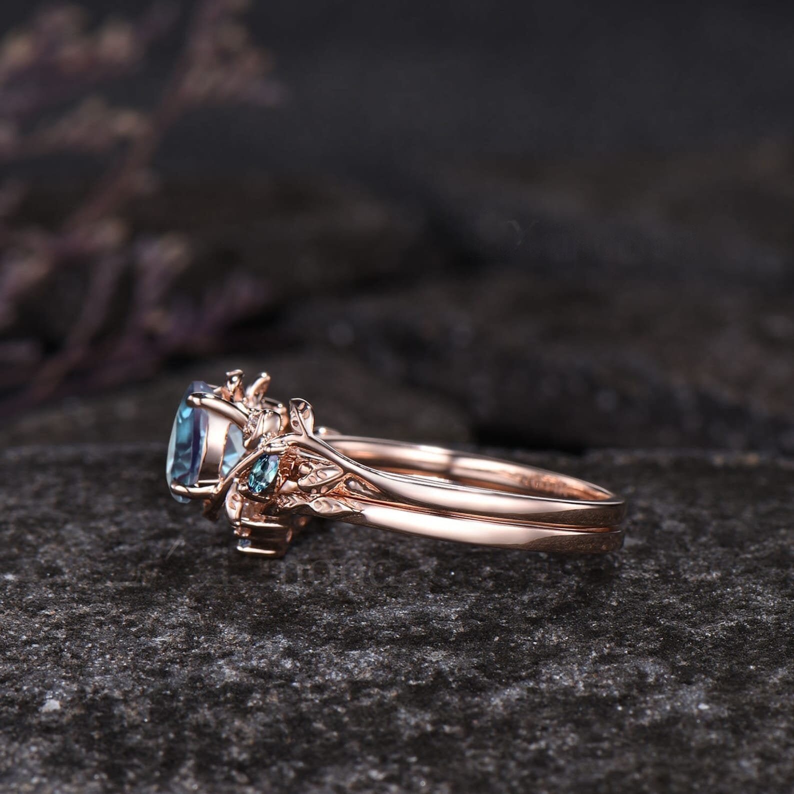 Matching band stones: Alexandrite and moissanite