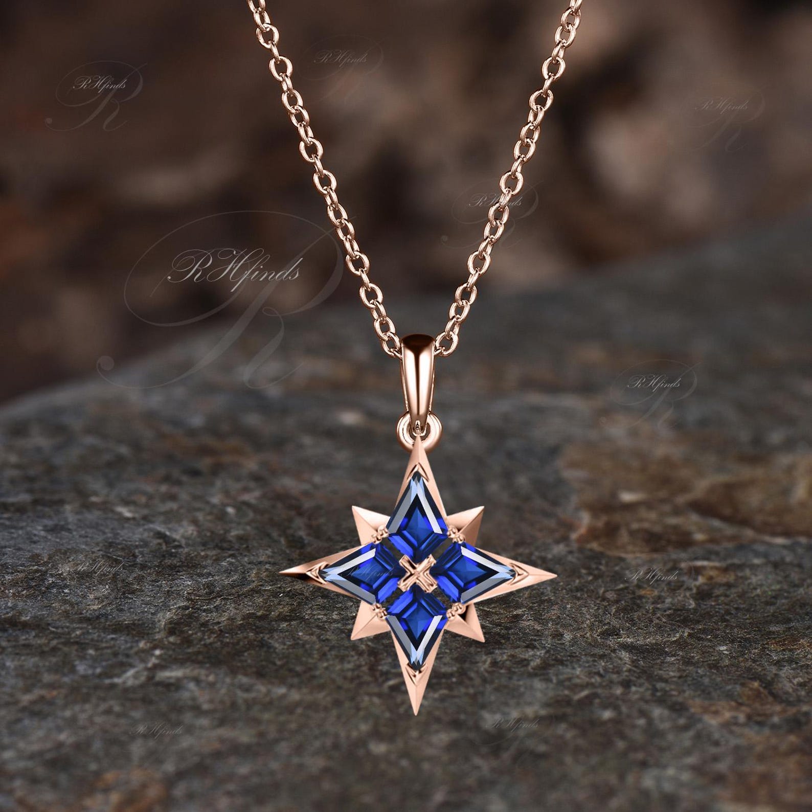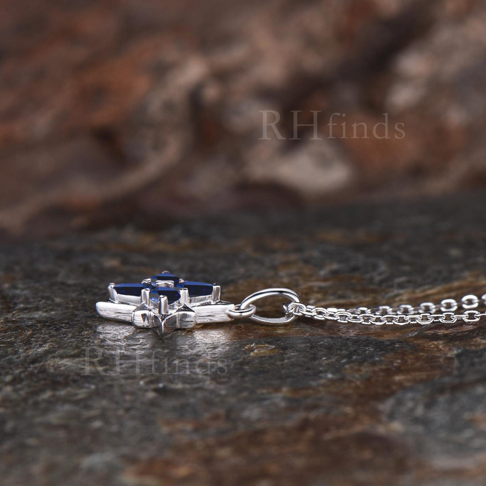 Minimalist 14K White gold Kite Cut Blue Sapphire Necklace Unique September Birthstone Blue Gemstone Polaris Pendant Delicate Necklace Gift
