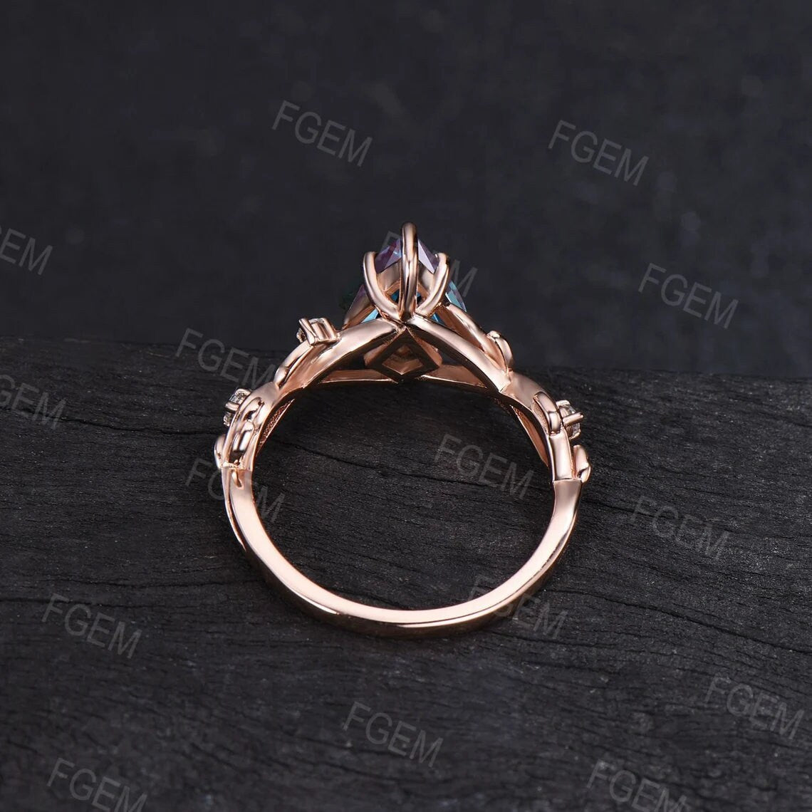 Nature Inspired Blue Sapphire Engagement Ring Vintage 1ct Kite Blue Sapphire Ring September Birthstone Jewelry Twist Leaf Blue Wedding Ring