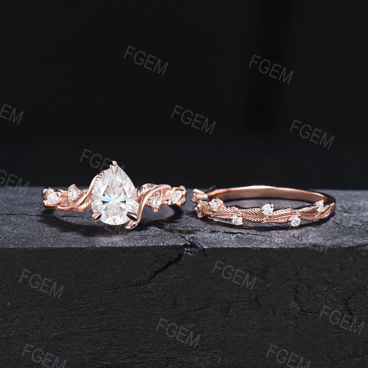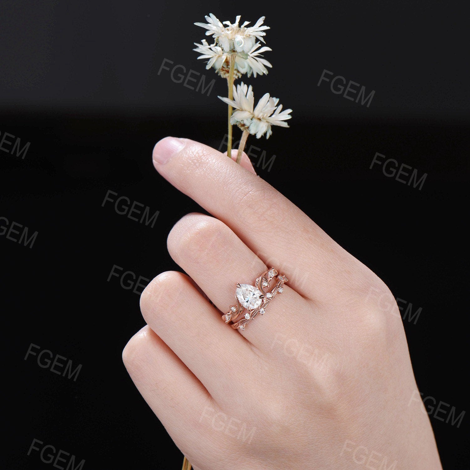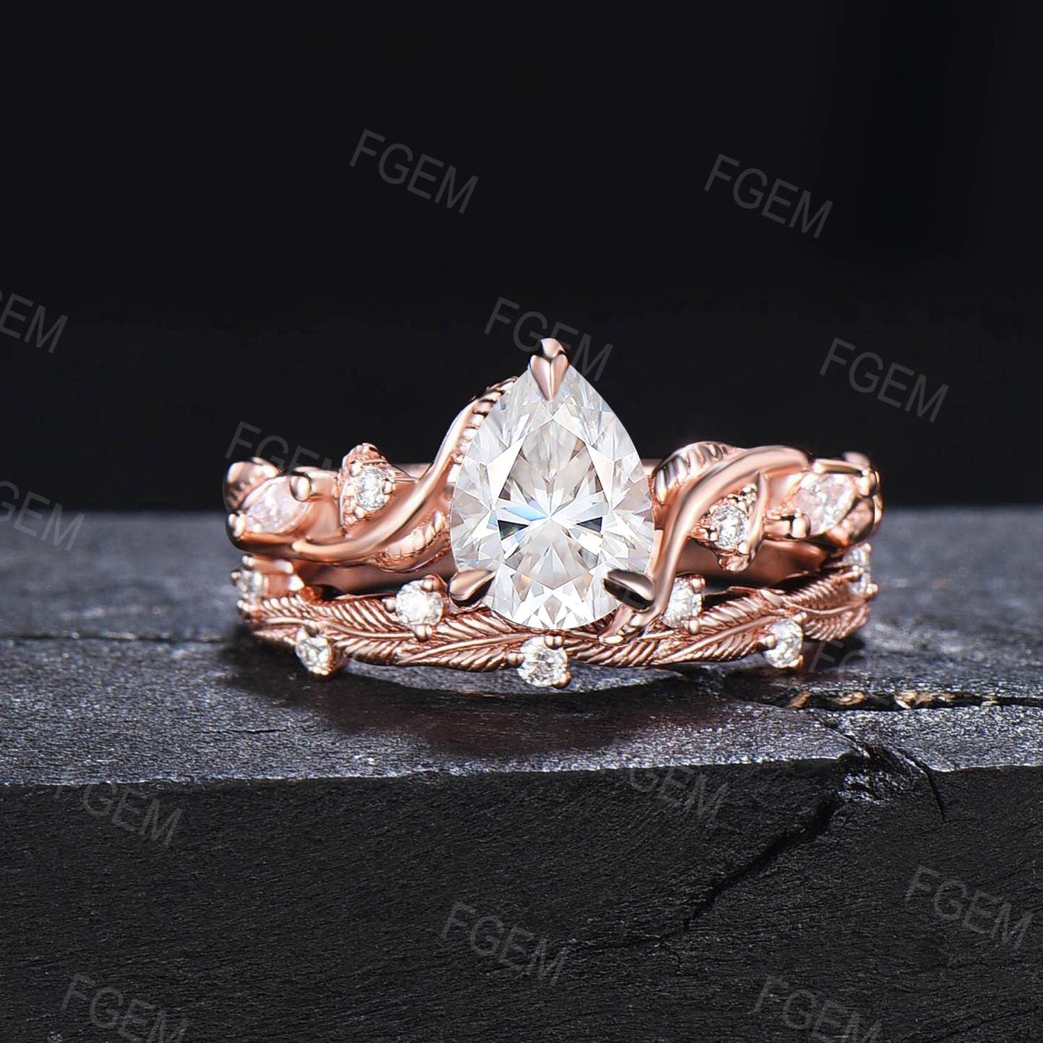 Nature Inspired Moissanite Engagement Ring Set Twist Band 1.25ct Pear Moissanite Diamond Wedding Ring Set Twig Vine Ring Branch Bridal Set