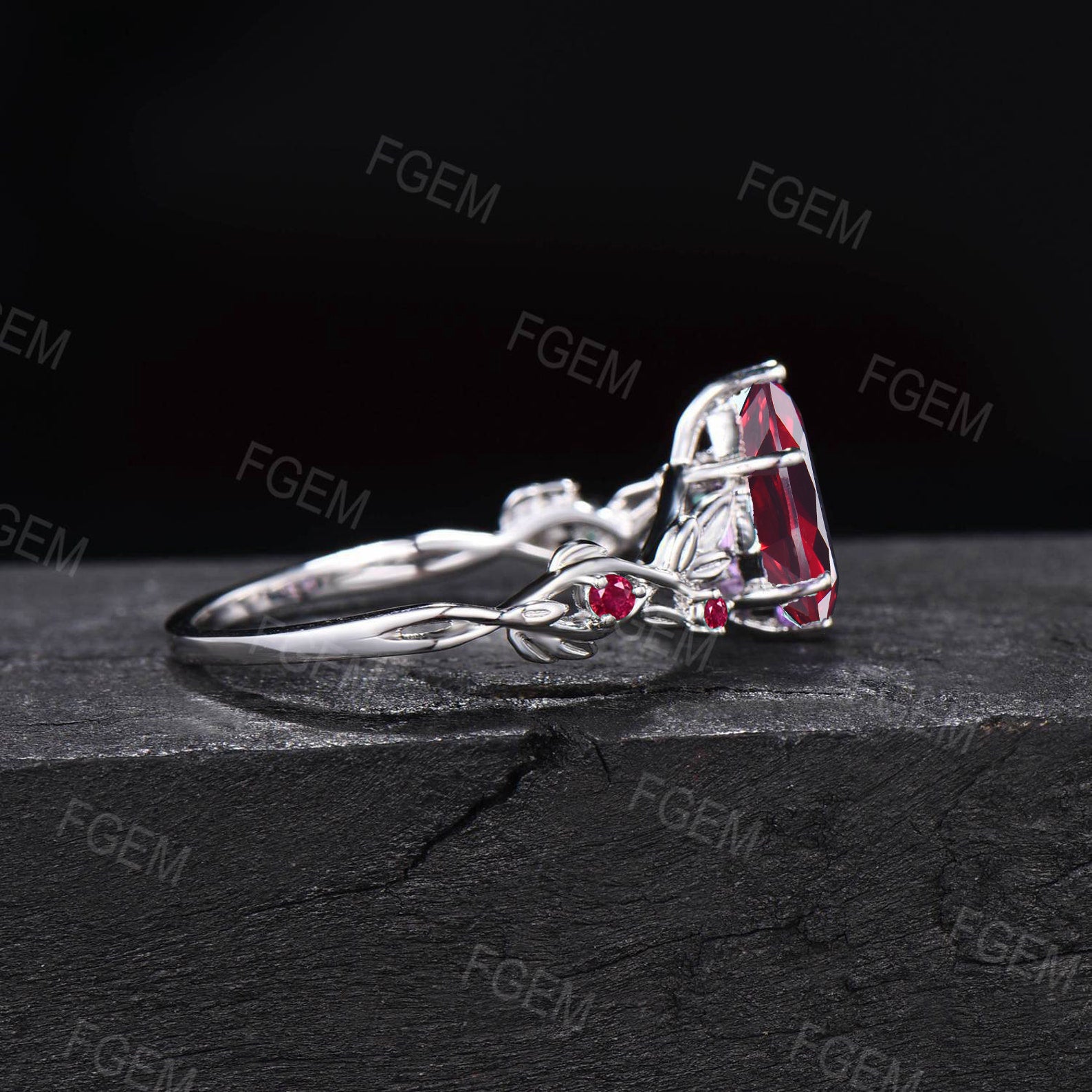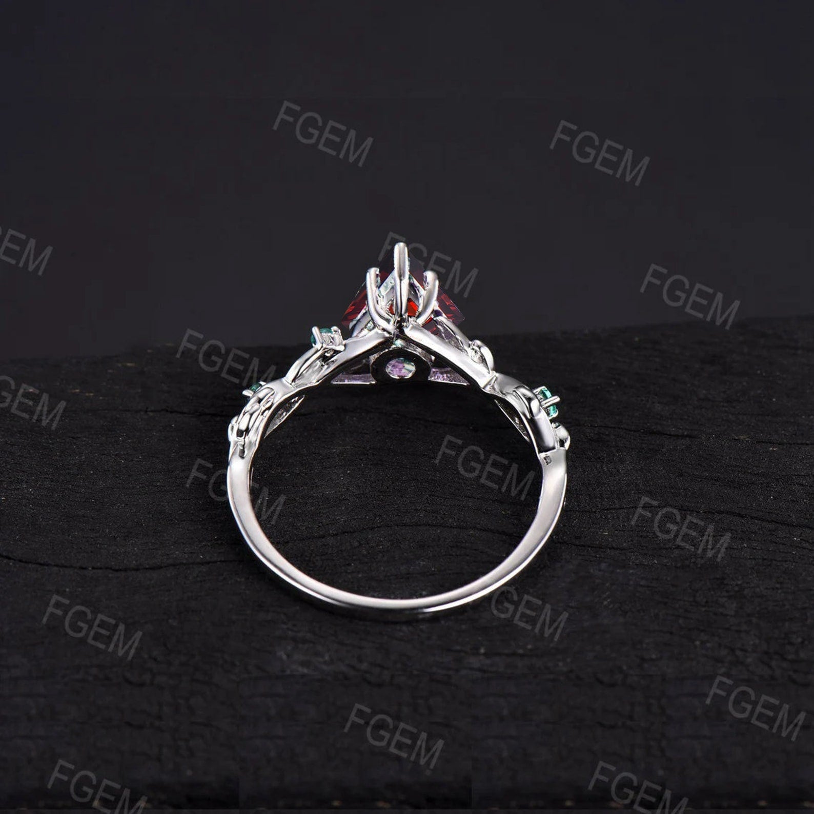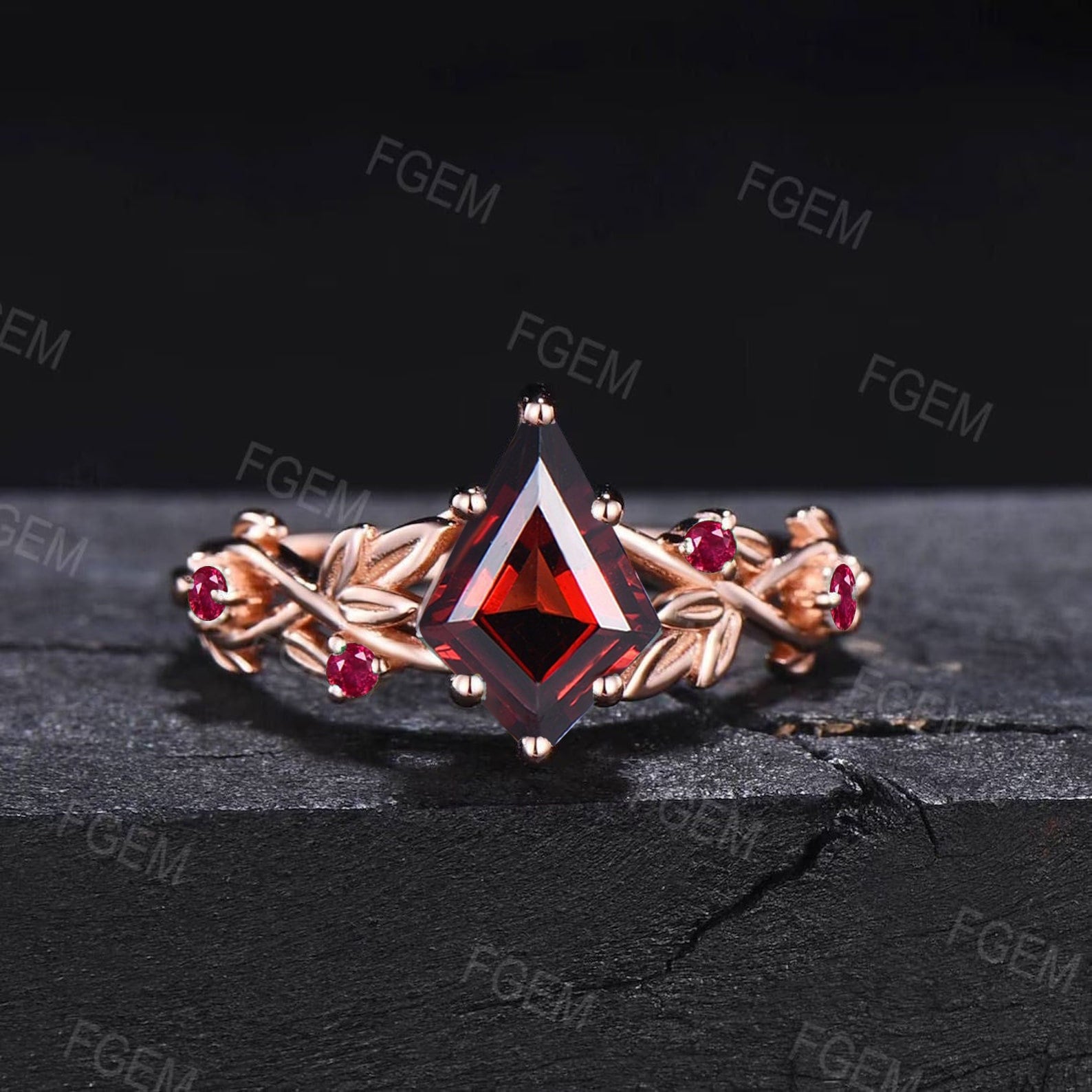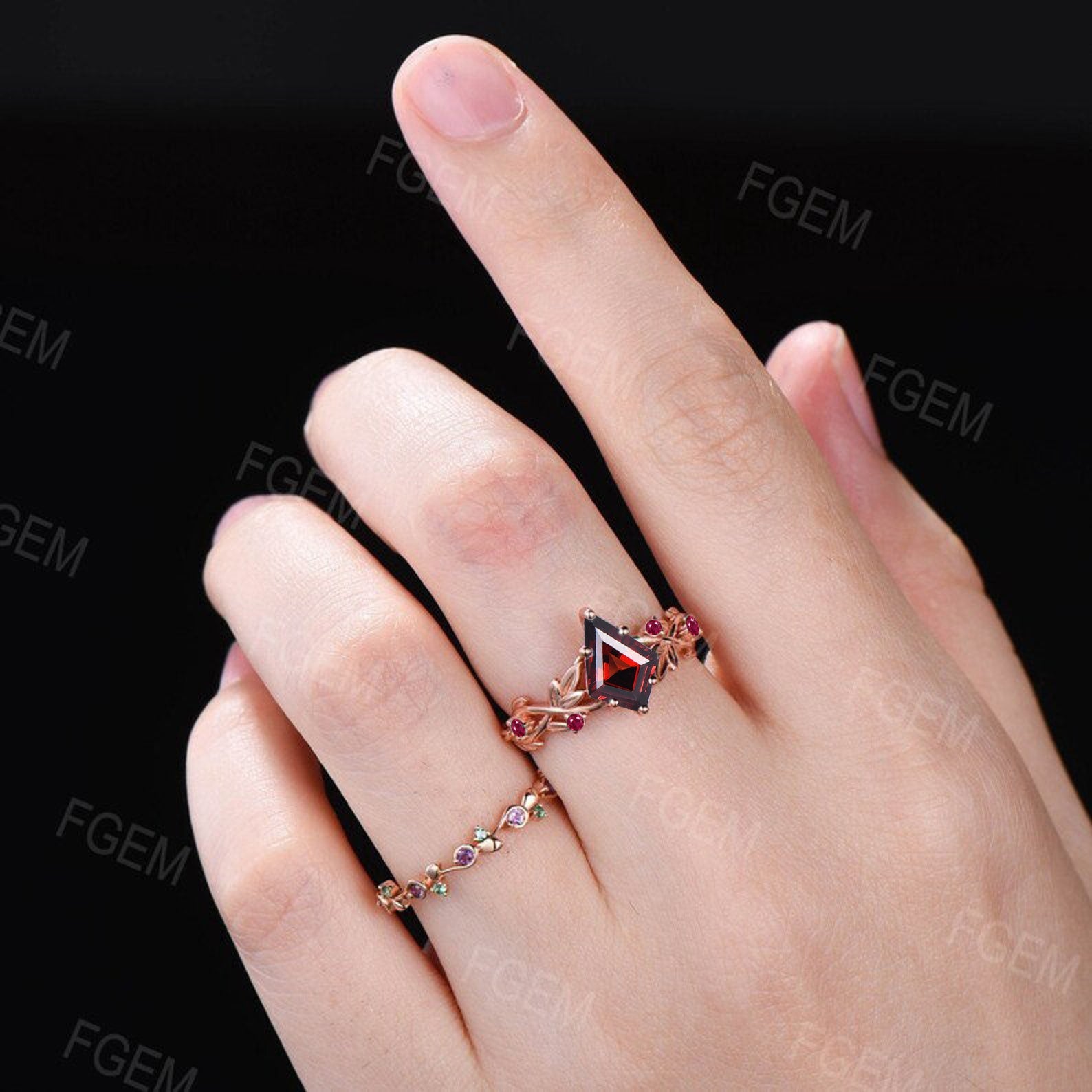 Nature Inspired Natural Garnet Ring 14K Rose Gold Kite Twist Leaf Garnet Engagement Ring Red Gemstone Jewelry January Birthstone Wedding Set
