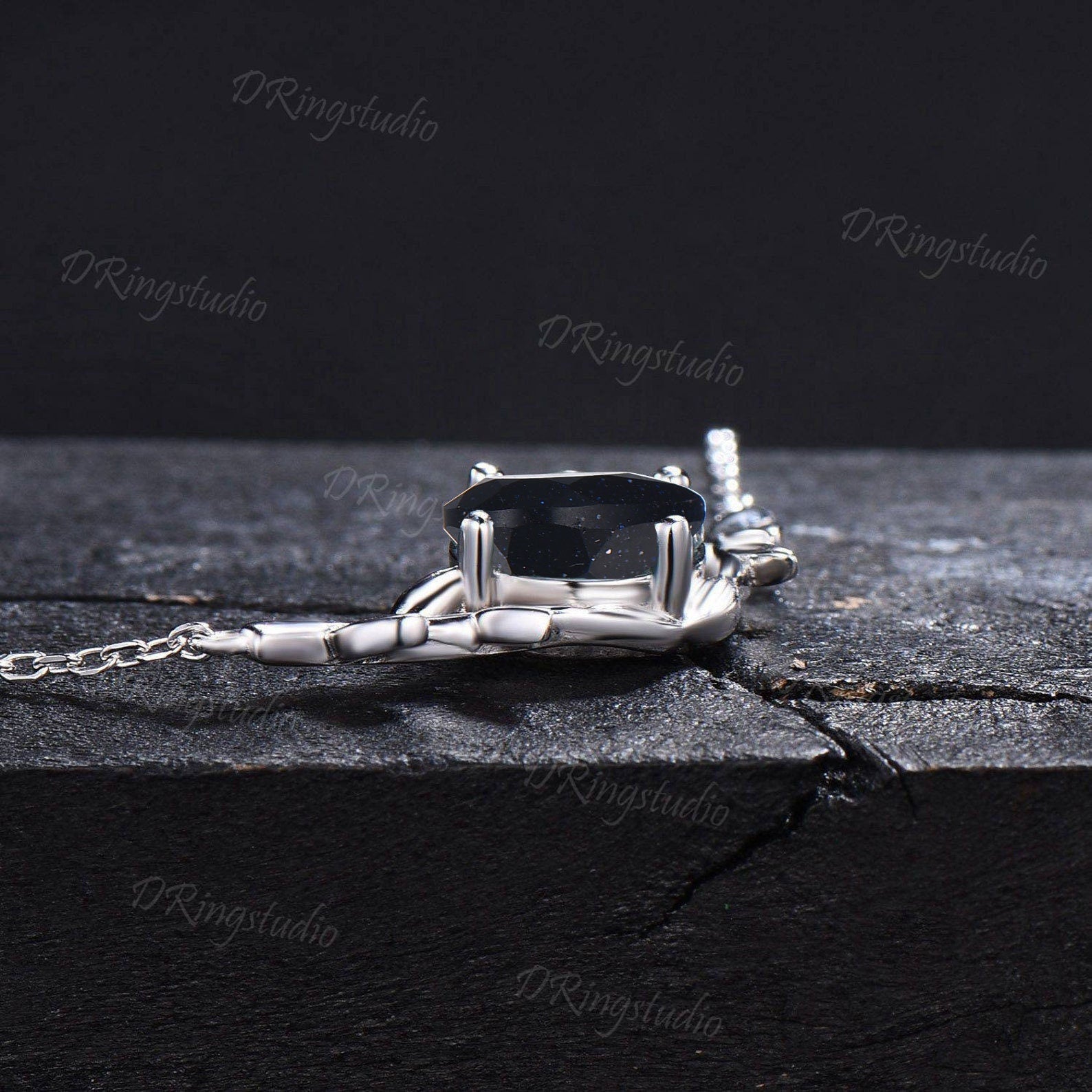 Pear Blue Sandstone Necklace Nature Inspired Branch Leaf Emerald Pendant 14k/18k White Gold Blue Goldstone Moss Agate Necklace Wedding Gift