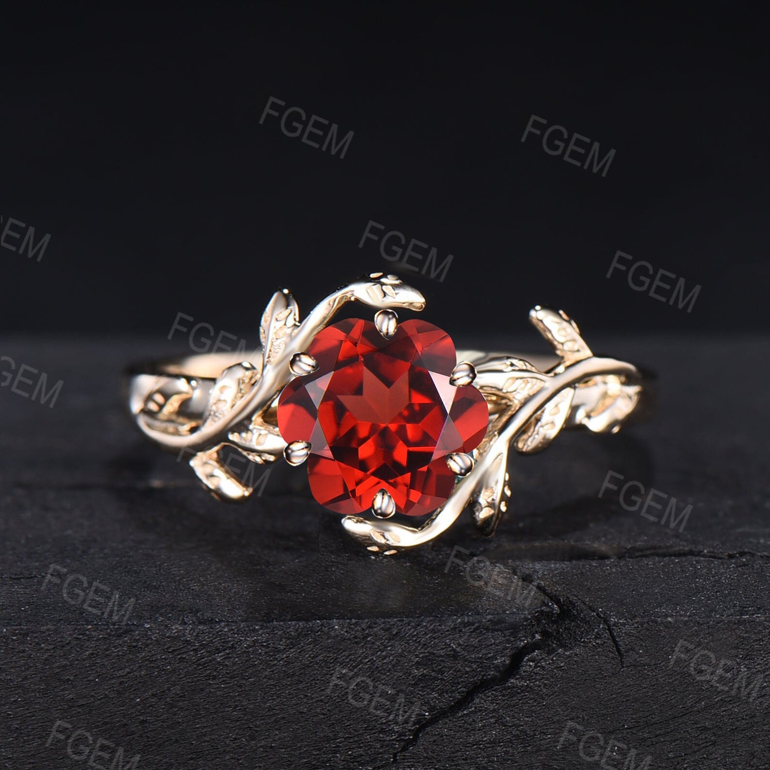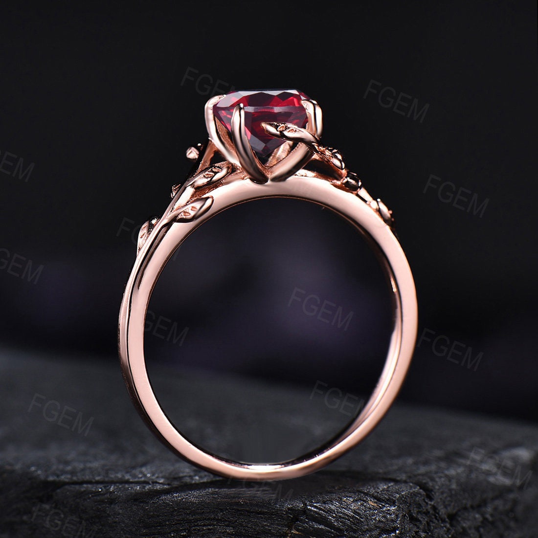 Rose Shaped Natural Garnet Jewelry Rose Gold Nature Inspired Twig Leaf Garnet Engagement Ring January Birthstone Unique Valentine's Day Gift