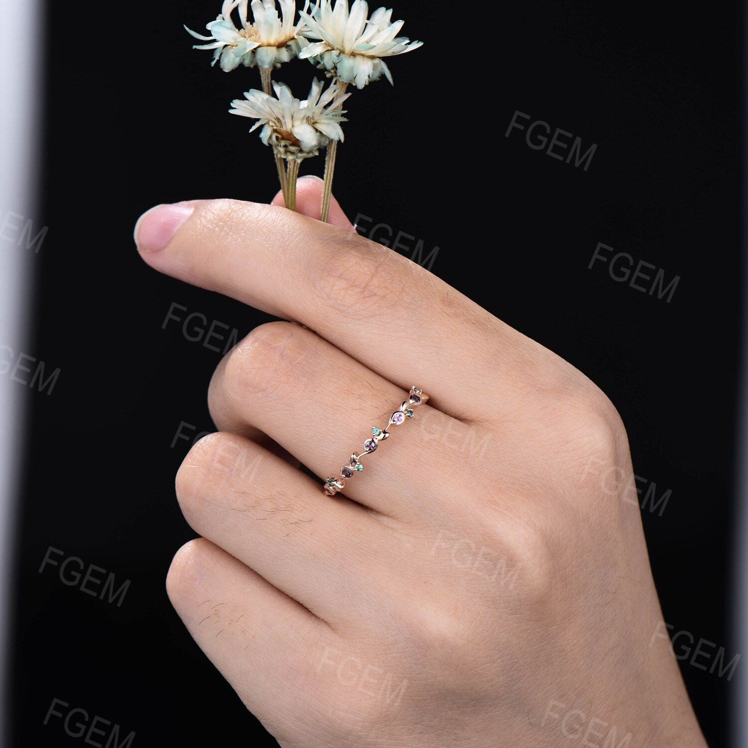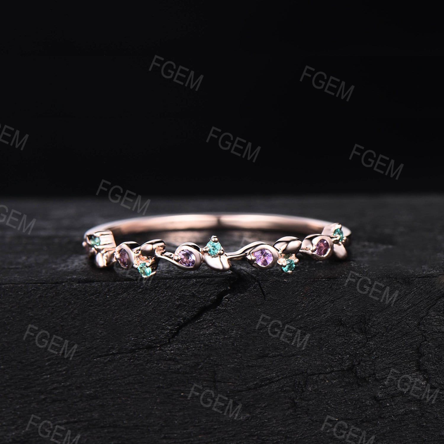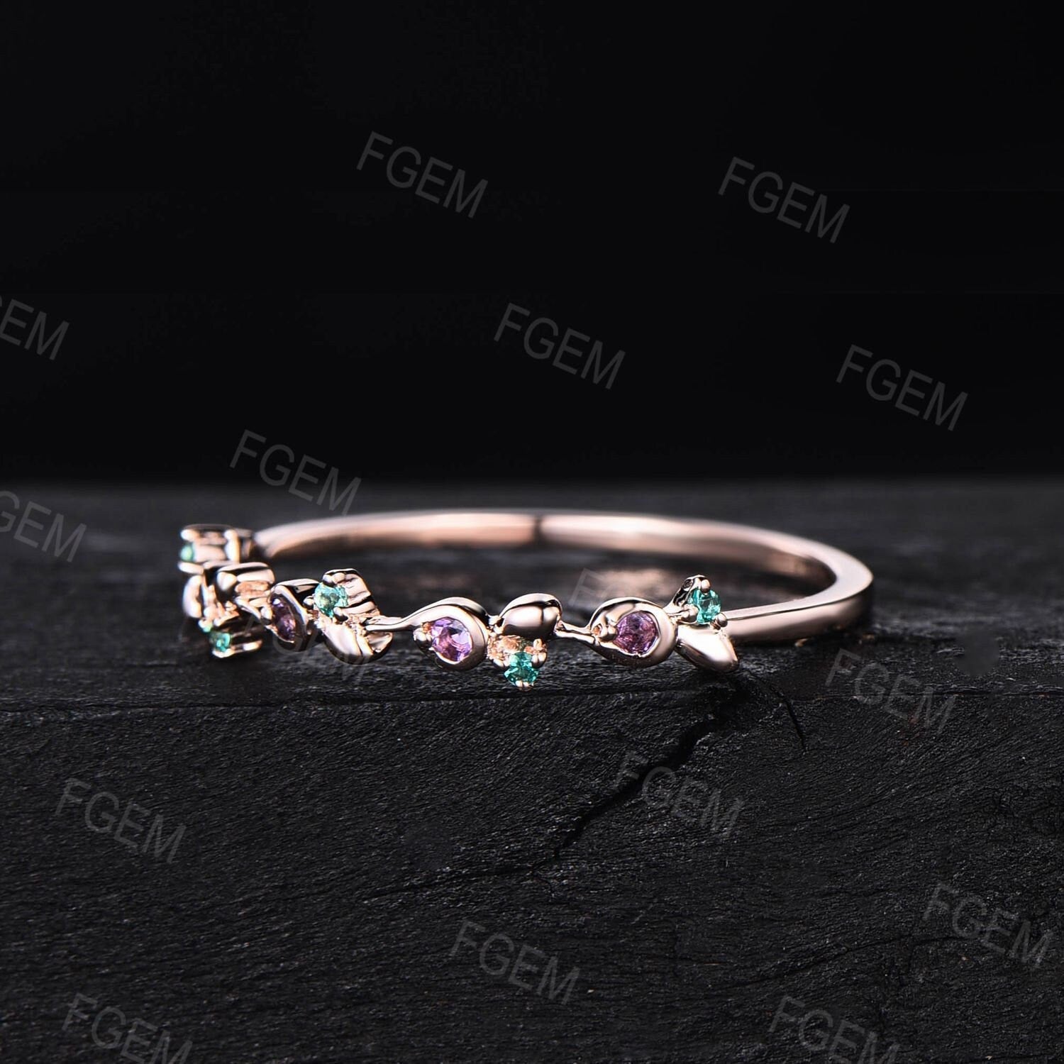 Round Amethyst Green Emerald Twist Twig Vine Minimalist Wedding Band Ring Dainty Nature Inspired Branch Matching Stacking Band Birthday Gift