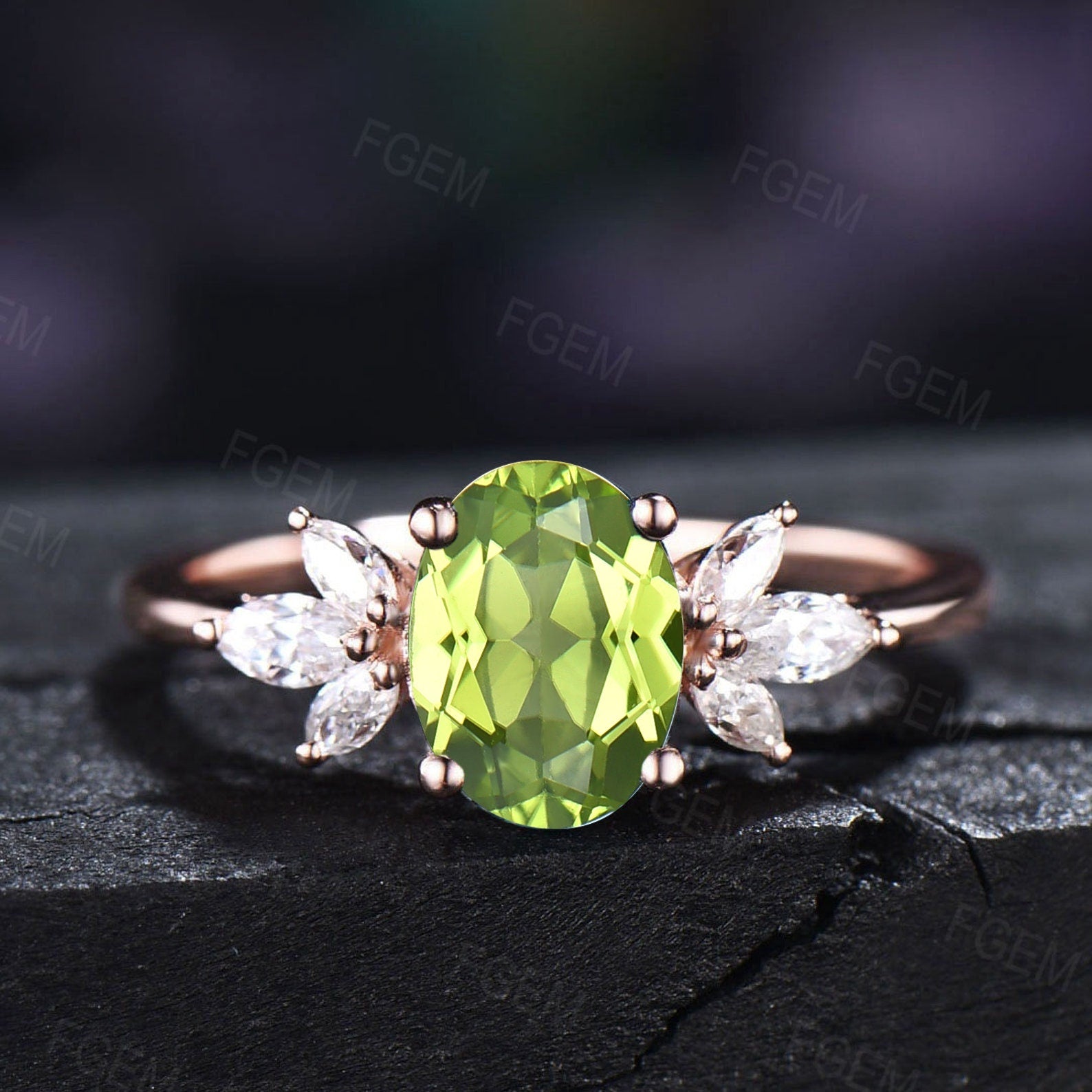 - Main stone : 6*8mm Natural Peridot Ring