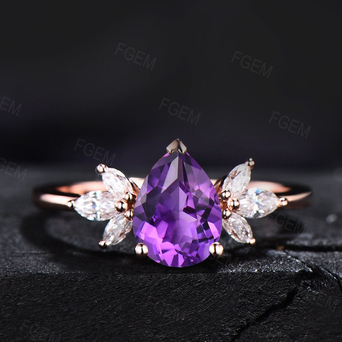- Main stone : 6x8mm pear Natural Amethyst