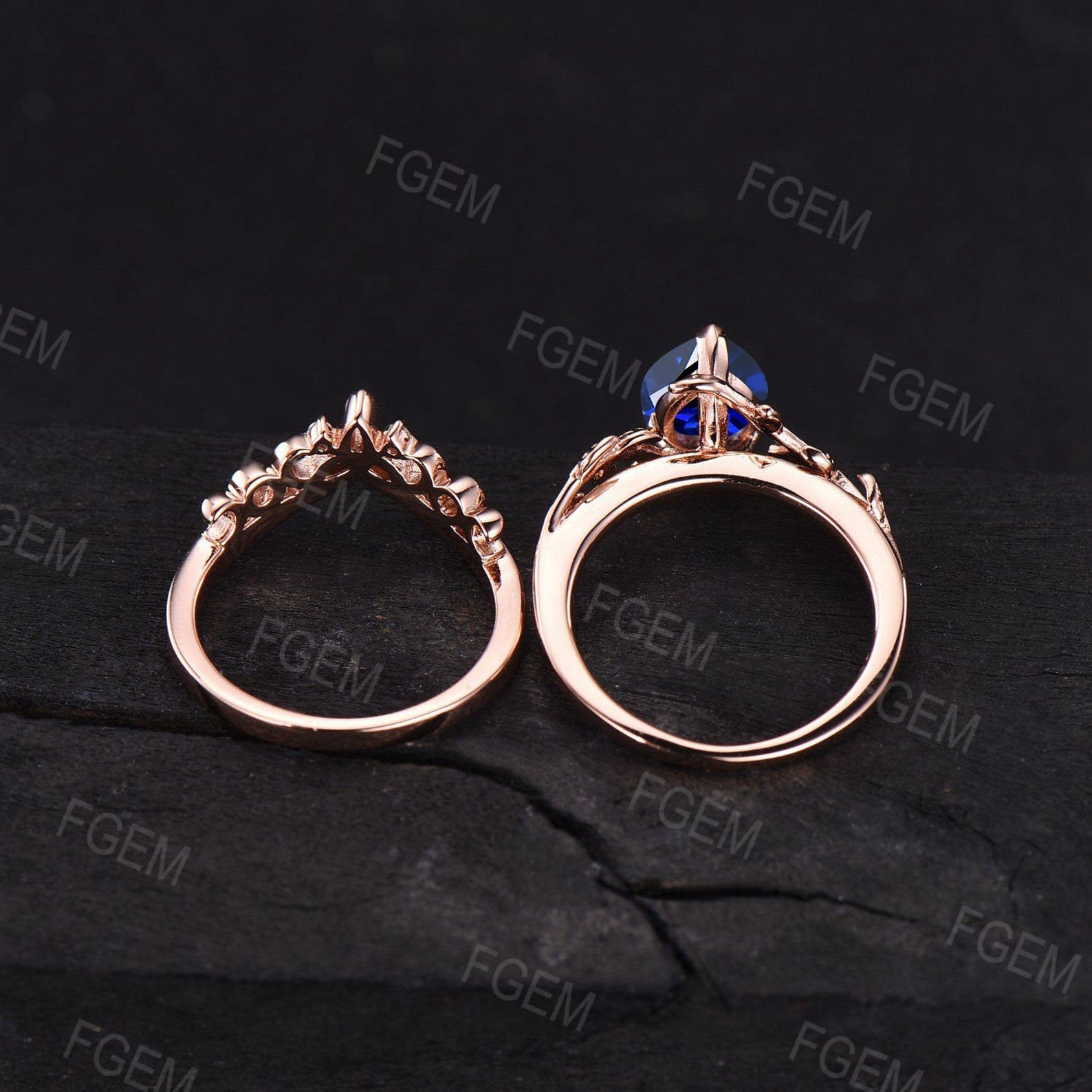 Sterling Silver Teardrop Blue Sapphire Engagement Ring Set Vintage Blue Bridal Set September Birthstone Jewelry Celtic Promise Ring Women