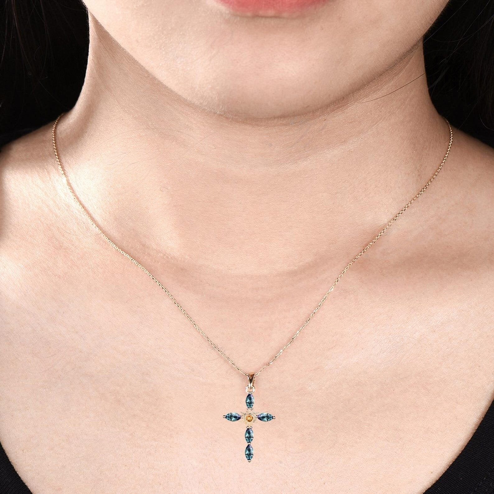 Unique Alexandrite Cross Necklace 14K Yellow Gold Citrine Sun Pendant Dainty Baptism Charm Religious Silver Jewelry Christian Cross Pendant