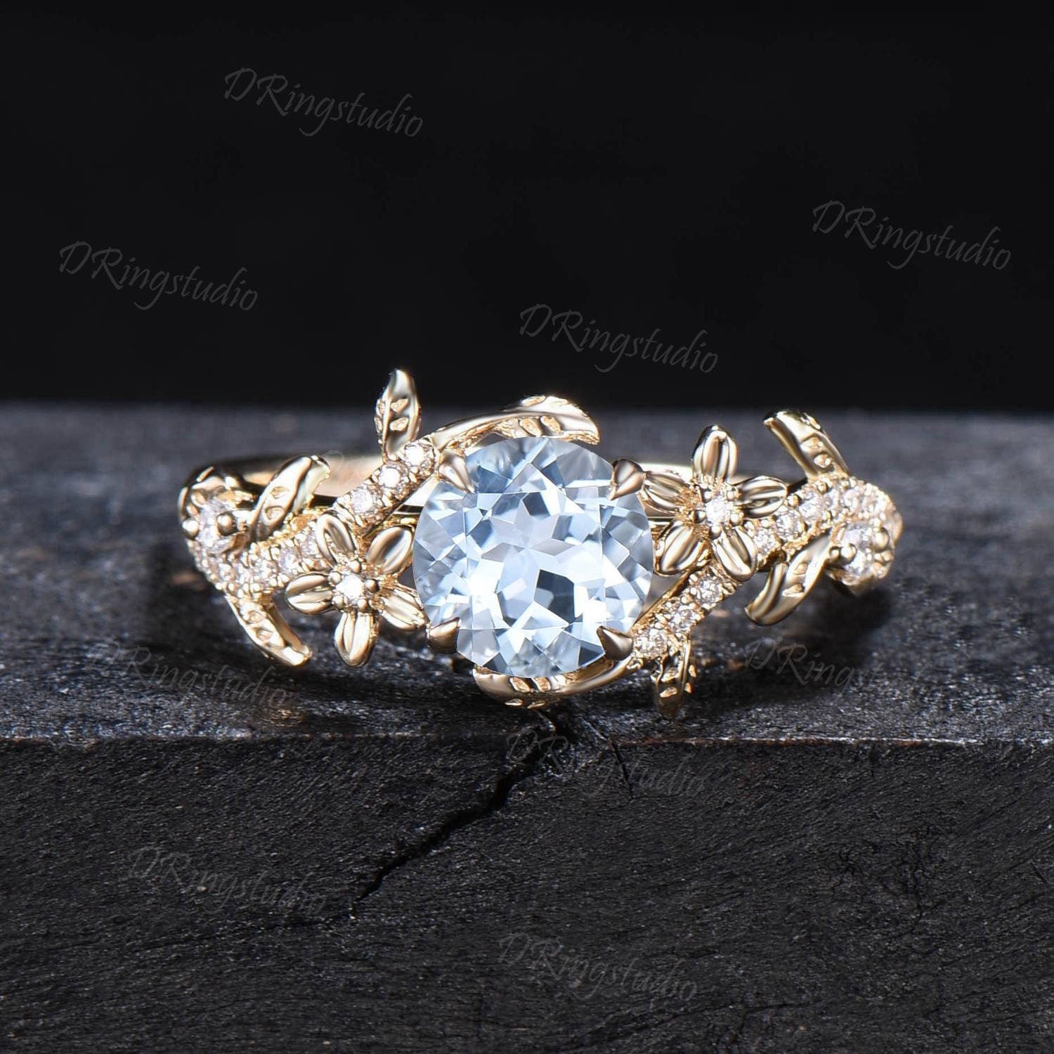 Main stone: 6.5mm Round Cut Natural Aquamarine
