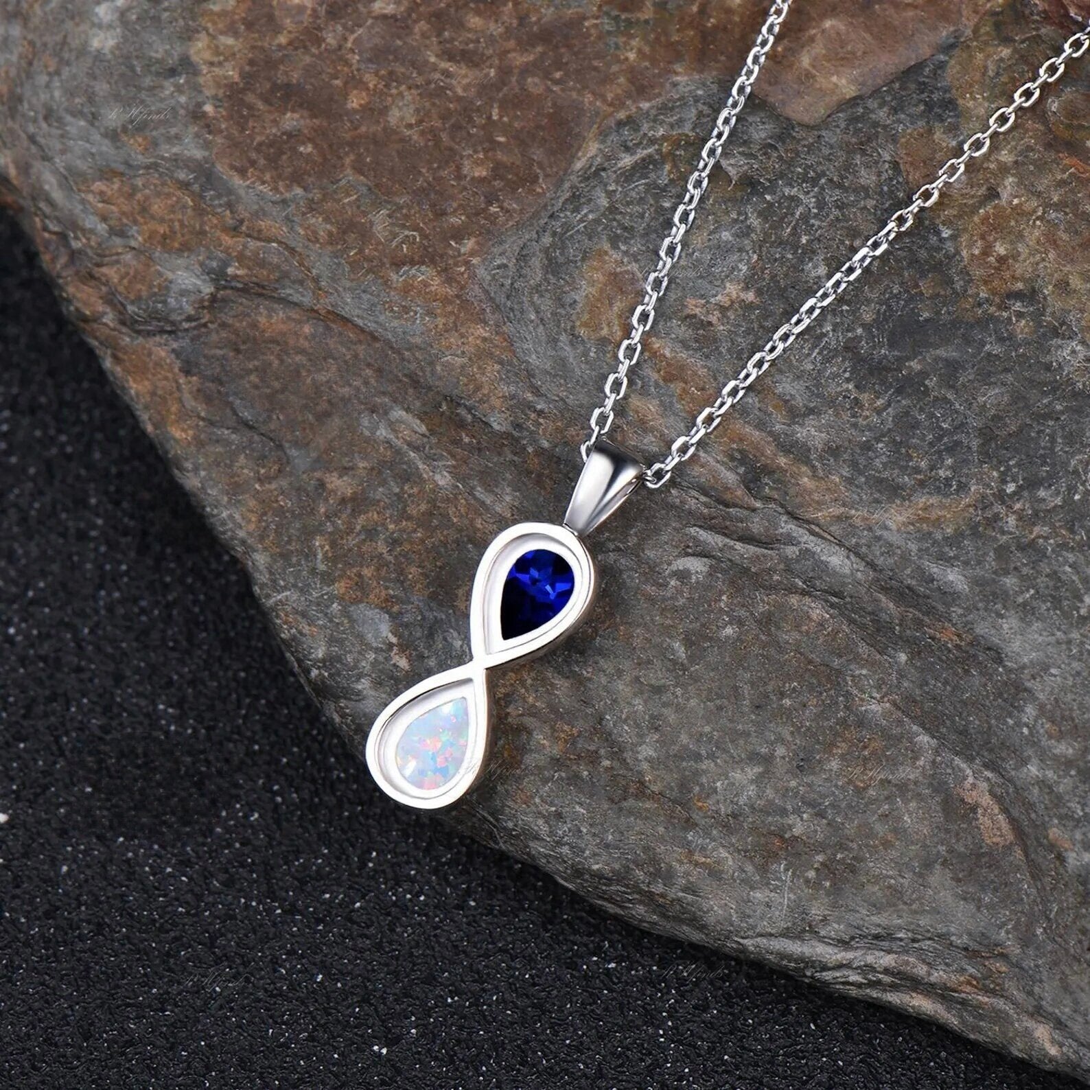 Unique Pear Cut Blue Sapphire Necklace Minimalist Teardrop Opal Necklace Art Deco Two Stone Pendant Toi et Moi Necklace
