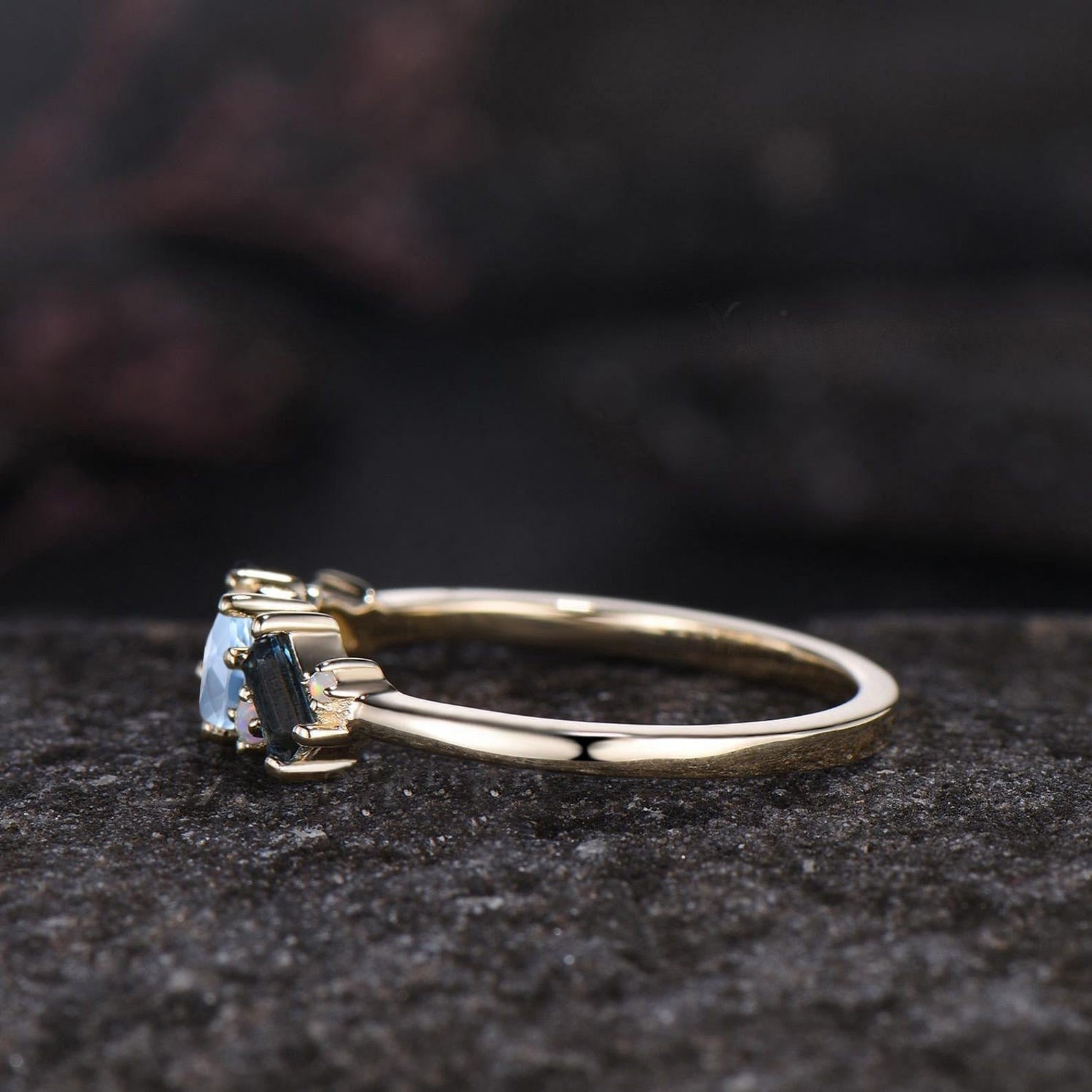 - Matching band : moissanite and opal