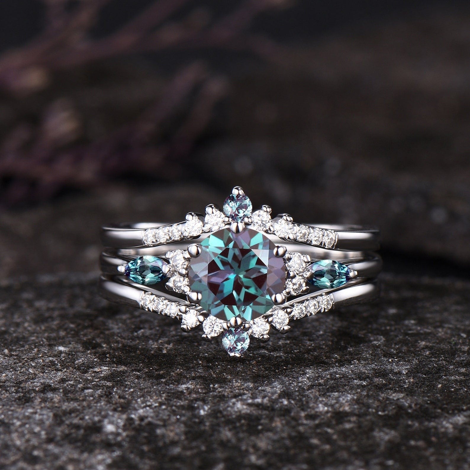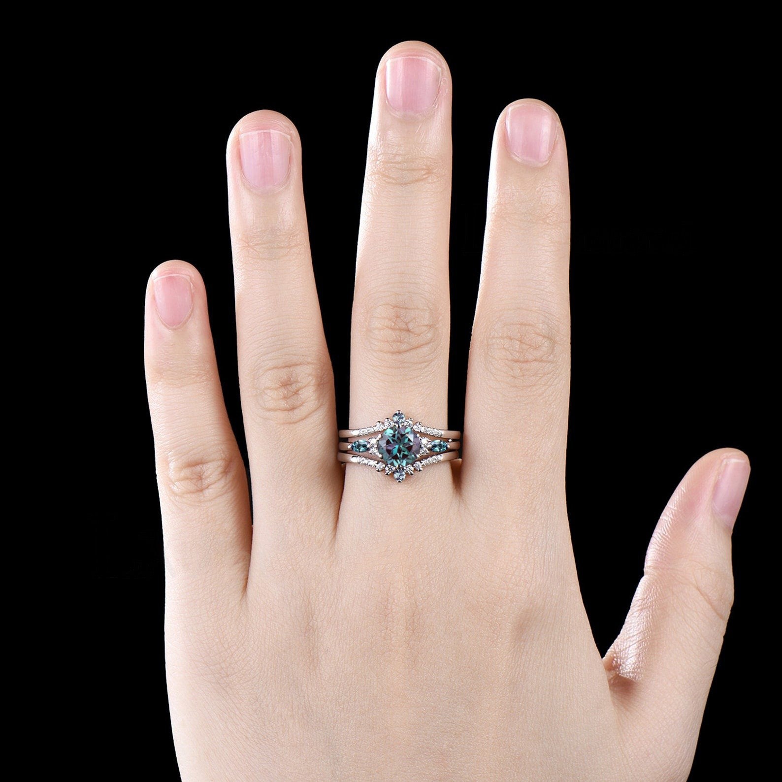 - Matching band : moissanite and alexandrite