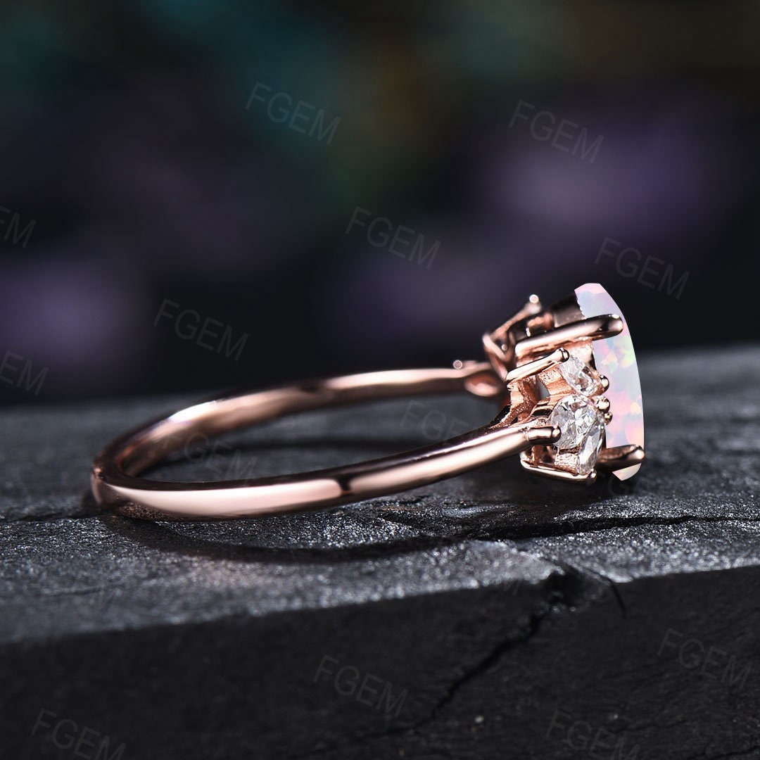 White Opal Ring for Women Rose Gold Ring Oval Opal Engagement Ring Sterling Silver CZ Diamond Cluster Ring October Birthstone Jewelry Gift